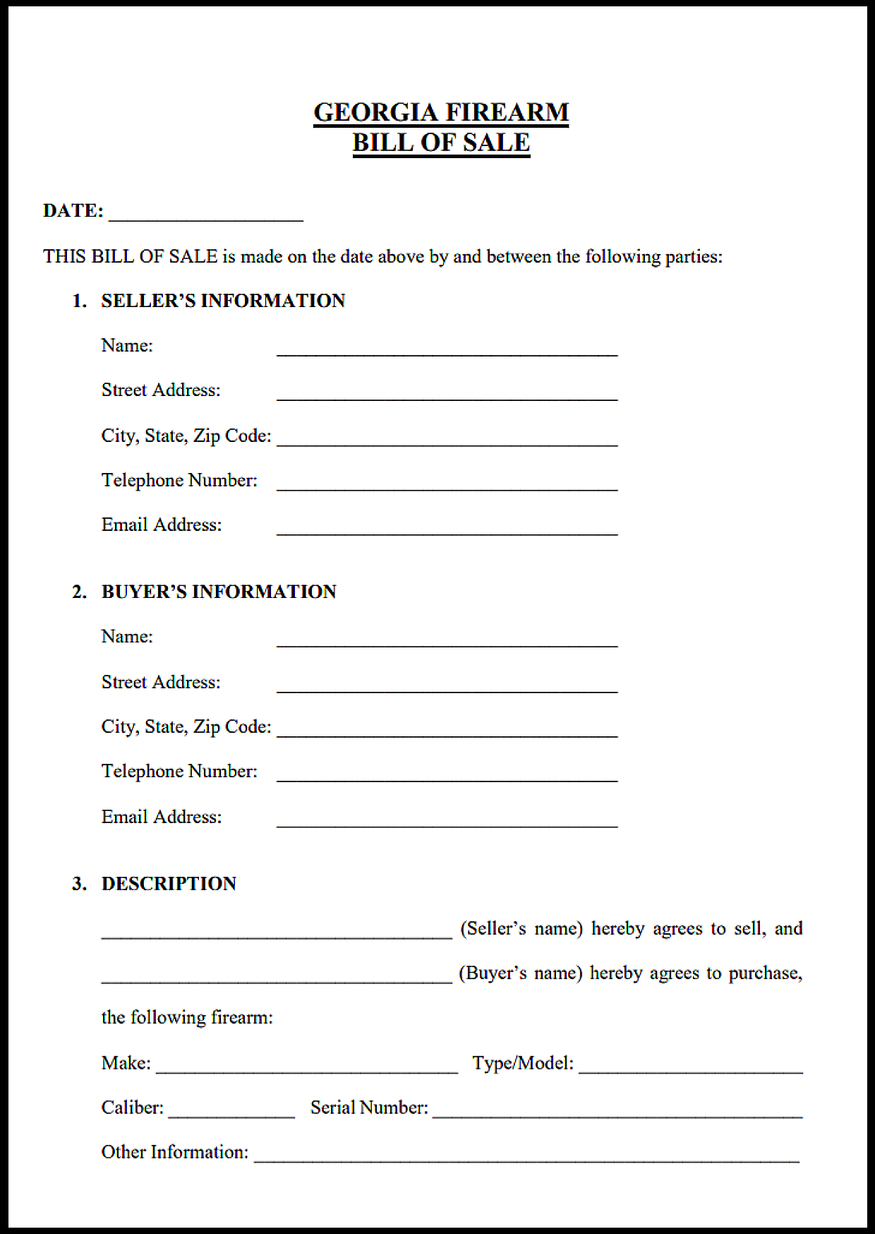 Firearm Bill of Sale Form Georgia