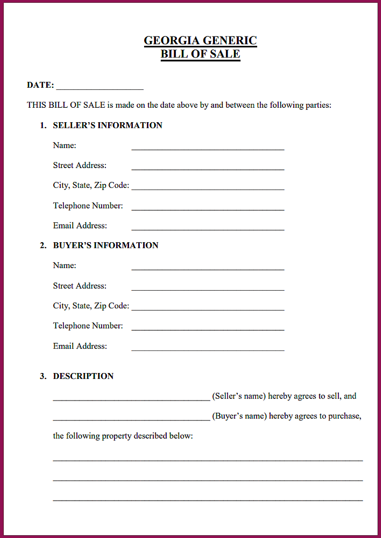 What a Proper Generic Bill of Sale in Georgia Should Include