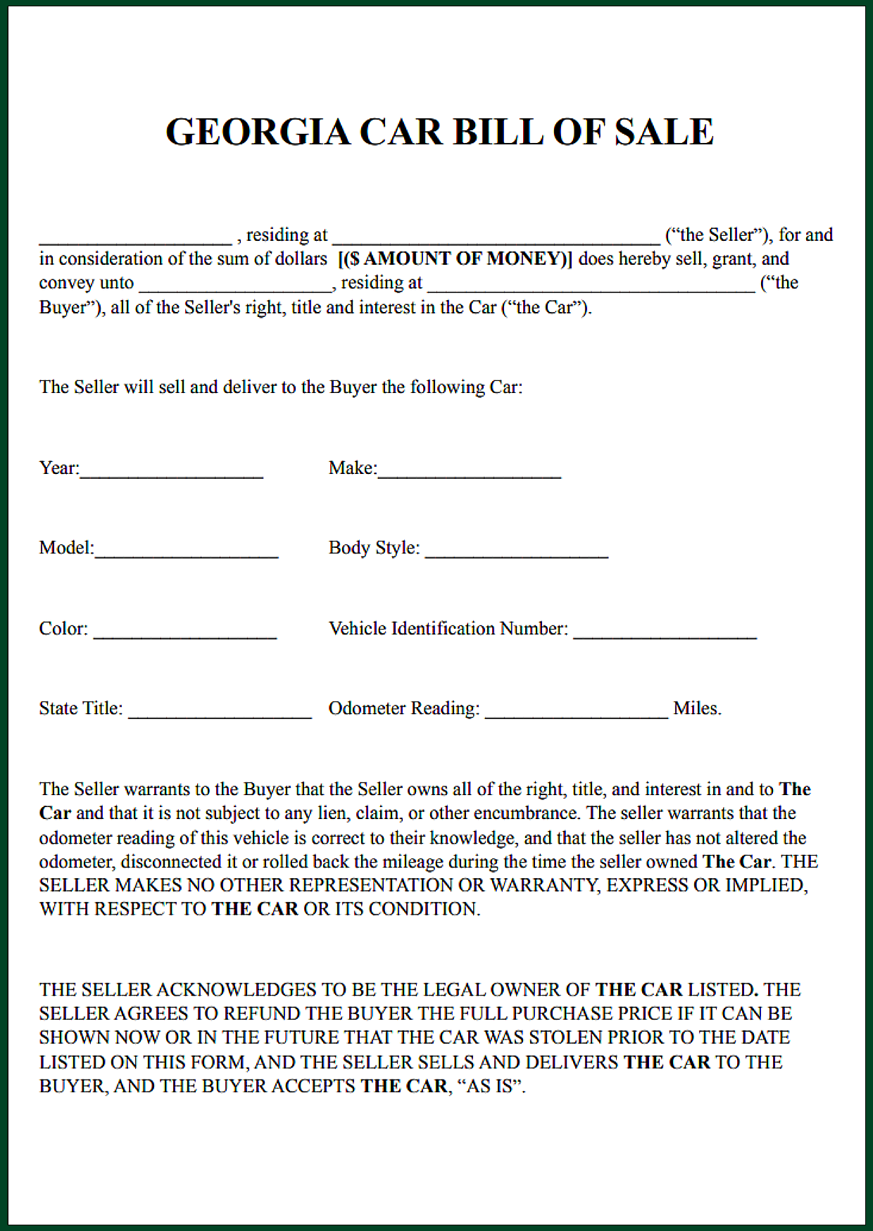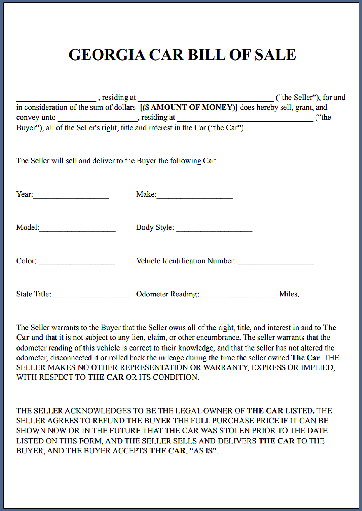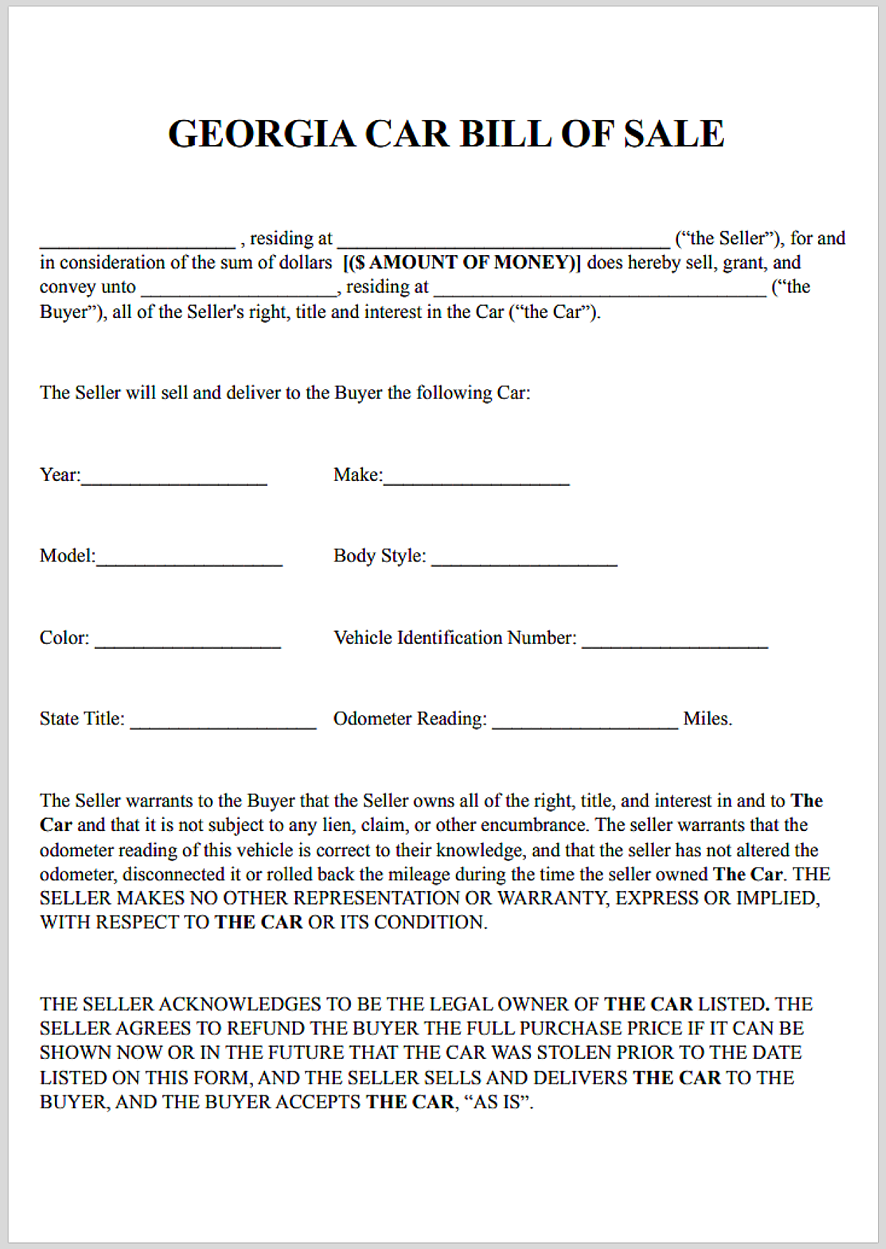 Georgia Car Bill of Sale Form
