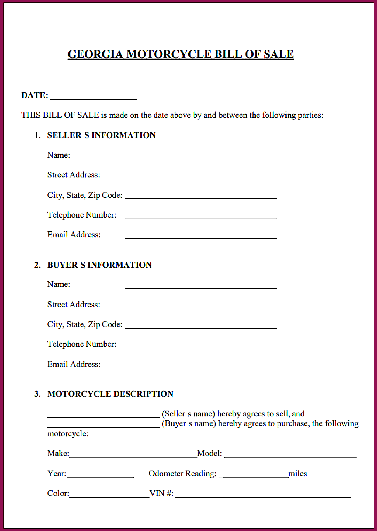 Motorcycle Bill of Sale Georgia