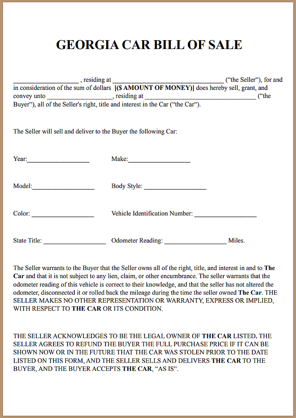 In my practice, this is what I strongly prefer to see on a Georgia bill of sale: